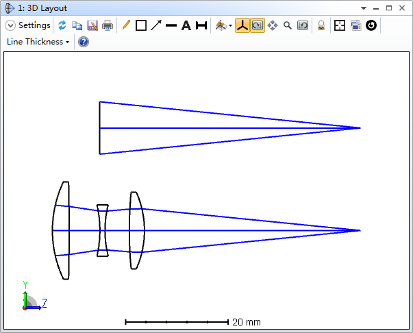 打开文件“ Paraxial Equivalent.zmx ”。它使用近轴透镜面型模拟了相同参数的系统: