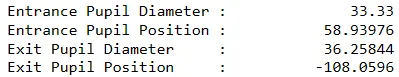 对于本系统来说,光瞳数据如下所示: