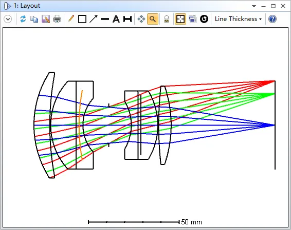 在某些系统中这个方法并不适用,例如在物方远心系统中系统入瞳位于物方无穷远处,因此光瞳无法在布局图中显示。