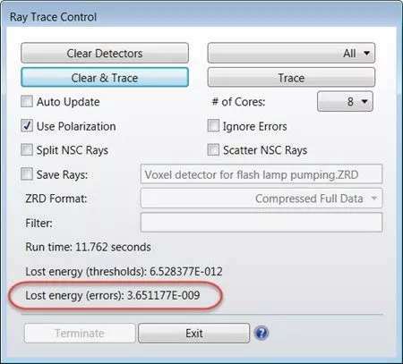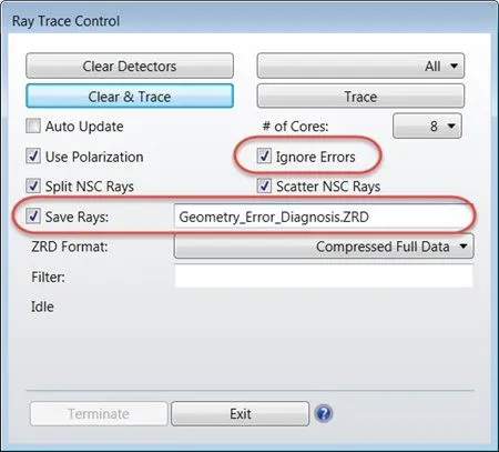如果要保存并查看光线追迹的详细信息,请勾选“忽略错误”并把光线数据保存成指定的文件名(扩展名为 .ZRD )。