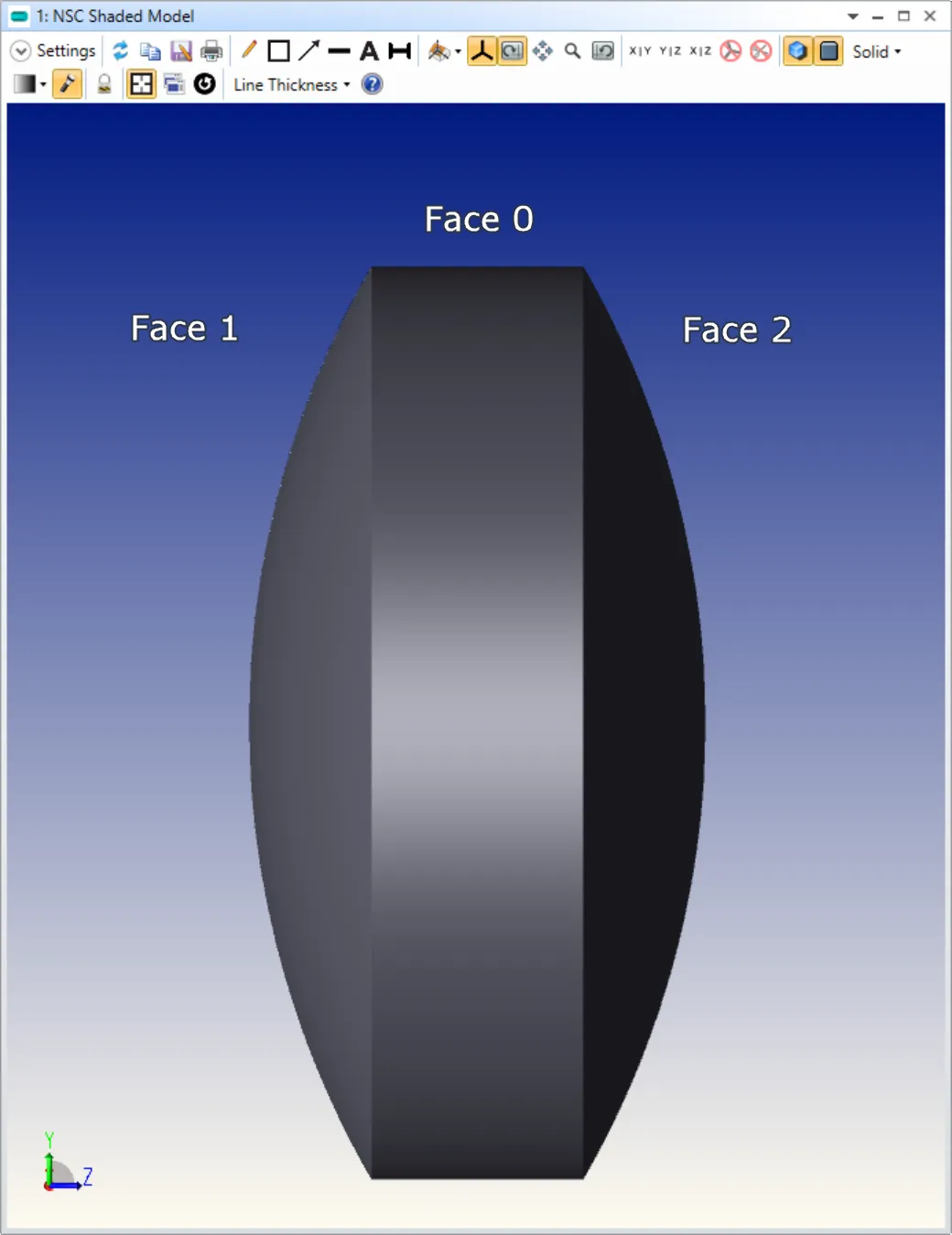 假设一个Standard Lens结构共有3个Face(编号从0开始),其NSC Shaded Model图如下所示: