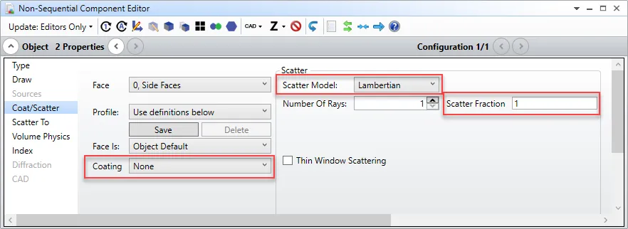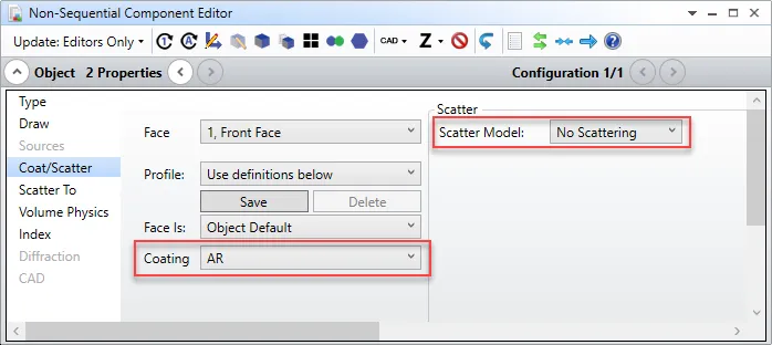 但是,由于以上这些CAD对象都是外部定义的,因此在分配镀膜、散射特性上都会有一些特殊问题。