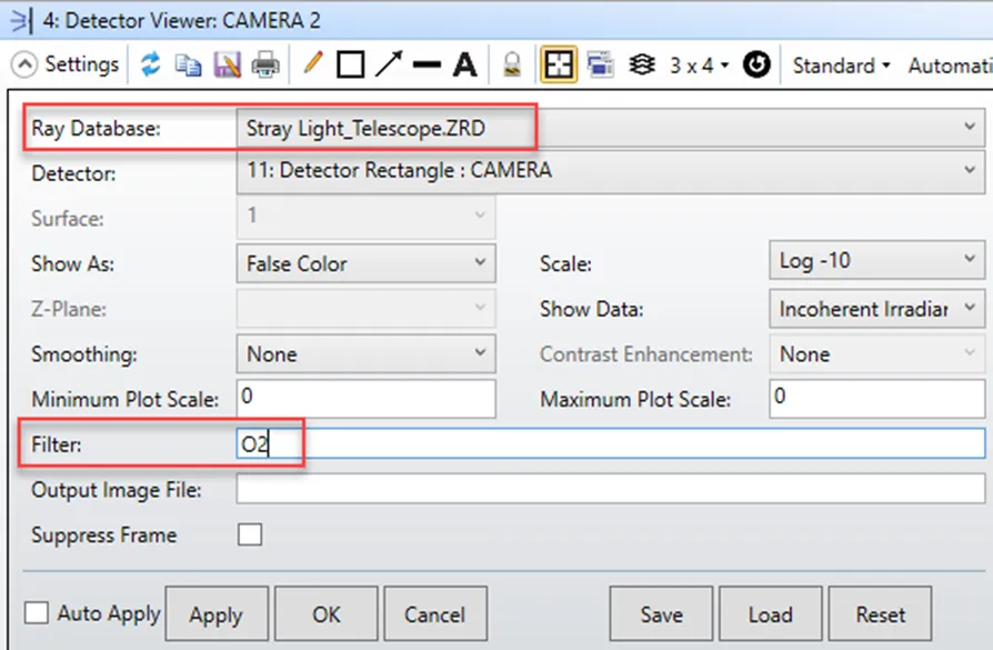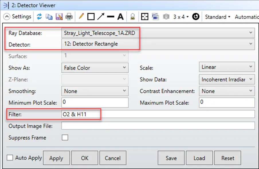 在检测器查看器的设置中,从光线数据库下拉菜单中选择先前保存的ZRD文件。一旦想要的光线数据库被选中,过滤条目就会被启用。