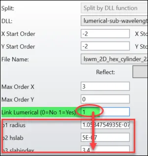 - 将参数“Link Lumerical (0=No 1=Yes)”设置为 1。