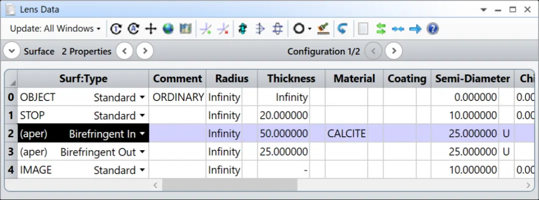 下图为OpticStudio中有关双折射晶体的设置: