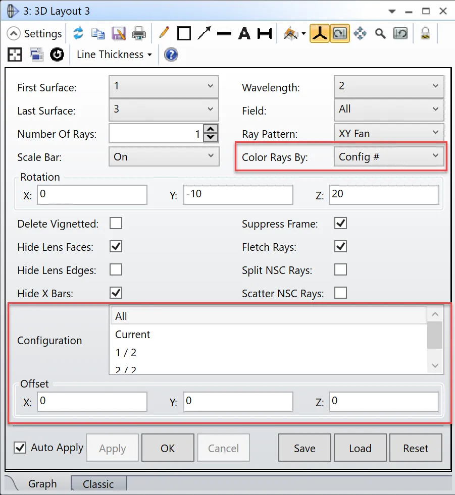 您可能会对布局图中的结果存在一些疑问:光线因双折射而分裂为寻常光和非寻常光两个分量,但是在序列模式下光线是无法产生分裂的(这意味着输入一条光线时输出也是一条光线)。实际上OpticStudio执行了两次光线追迹分别追迹两种情况,并使用模式参数 (Mode Flag) 来决定当前光线追迹的类型: