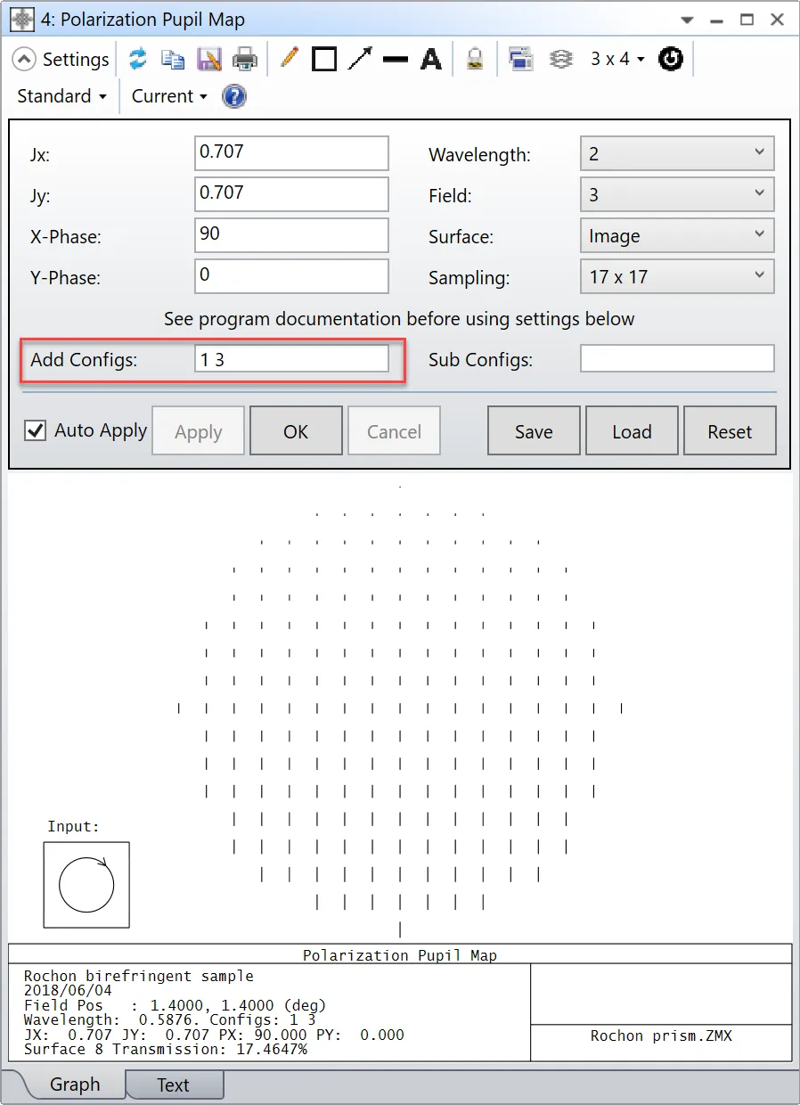 - 使用双折射输入面中的模式参数和多重结构功能可以分析任意偏振态光线的偏振追迹结果