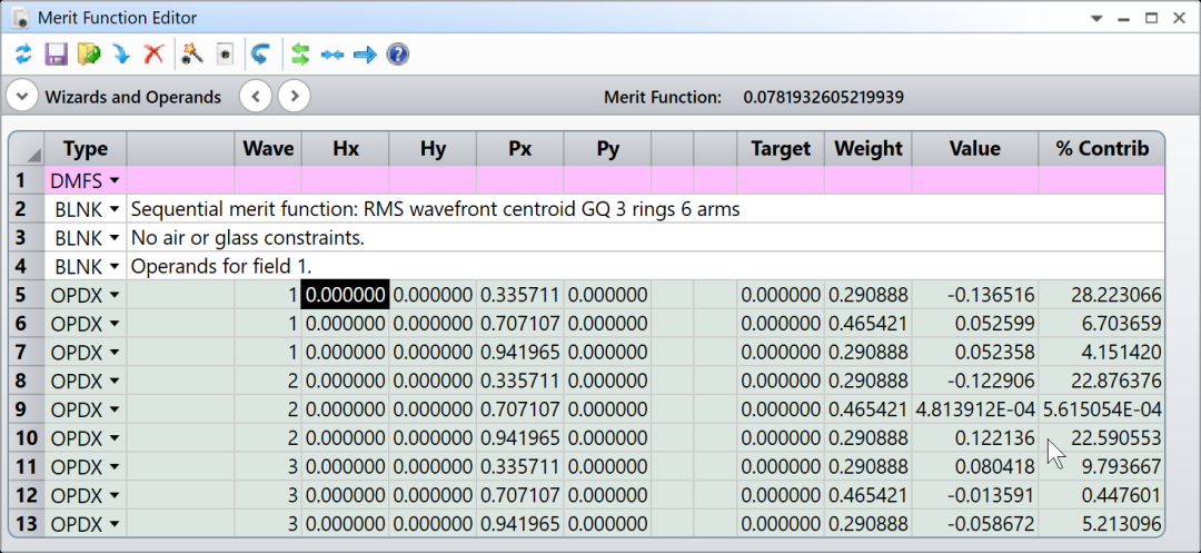 点击“OK”,评价函数编辑器将显示如下: