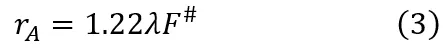 其中,F#是工作F 数,等于聚焦透镜的焦距 ff 除以系统的口径。由此关系可以得出: