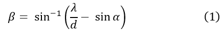 该公式描述了多色光在光谱仪中是如何分解为不同波长的。可以看到,衍射角只取决于波长( 对于给定的 α 和d )。