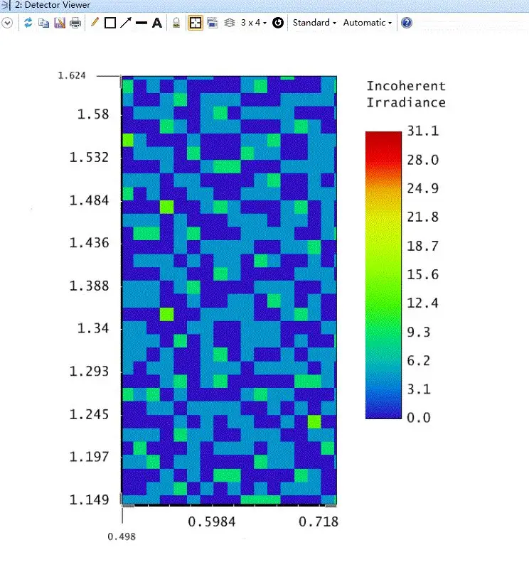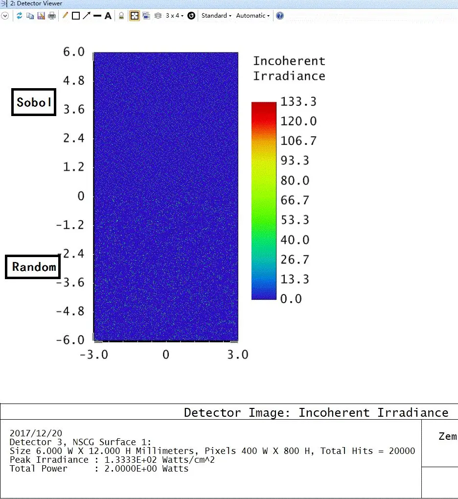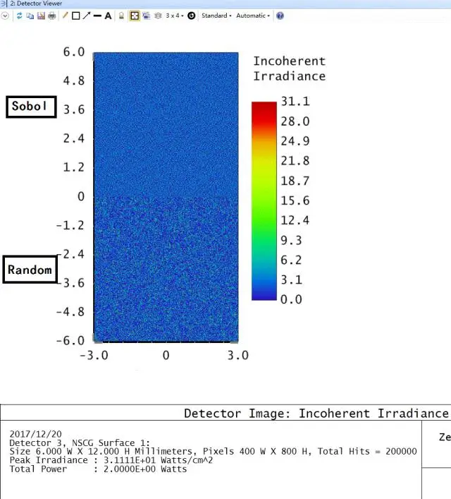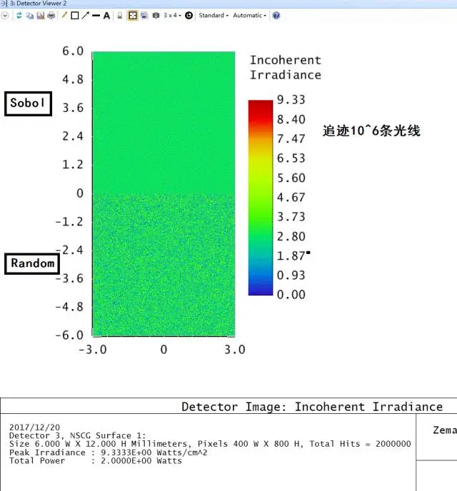 如果我们对每个光源都追迹10^4条光线,Detector Viewer结果图如图2所示,图中很难看出两者的差距。