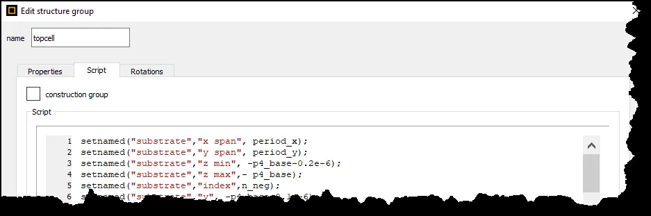 还可以看出,为 topcell 组定义了一些脚本。需要这些脚本才能将用户属性转换为实际几何图形。