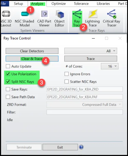 - 打开“光线追踪控制”对话框并追踪光线。
