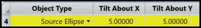 请注意,这仅显示中心场的结果,即来自图像源上中心像素的光。我们将“倾斜约 X”和“倾斜约 Y”设置为 5 度,以便检查不同入射光束的结果。