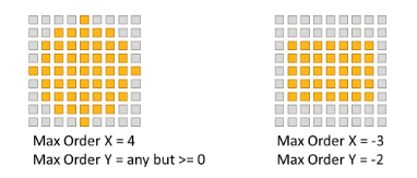 当 X<0 或 Y<0 时,在谐波空间中对矩形区域进行采样。矩形区域的 x 和 y 方向的半宽是最大阶数 X 和 Y 的绝对值,如右侧所示。