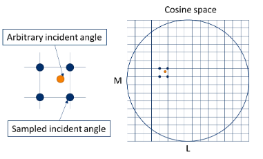 这两个参数控制如何将来自 Lumerical 的数据缓存在 RAM 中。在此工作流程中,Lumerical为每个入射角计算的数据将被缓存,然后针对任意入射角进行插值,如下所示。