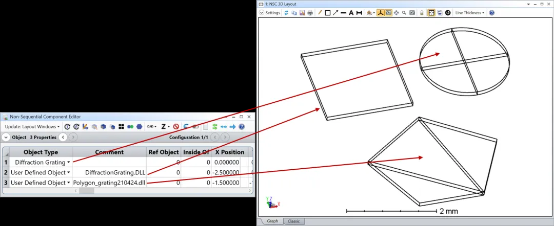 - 在OpticStudio中打开epe2d_2dgrating.zar,观察它是如何定义的。