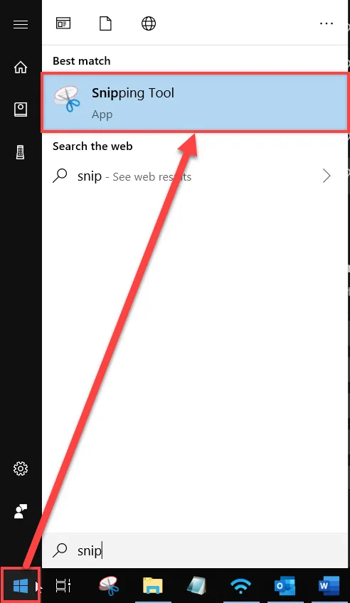 使 OpticStudio 图表进入其他应用程序的另一种方式是执行截屏。有多种工具可用于此操作。一个此类工具已直接内置于 Windows 10:截图工具。您可以在 Windows 开始菜单中搜索并找到该工具:
