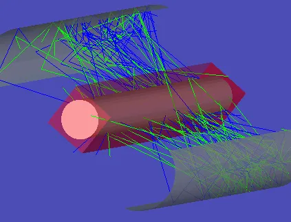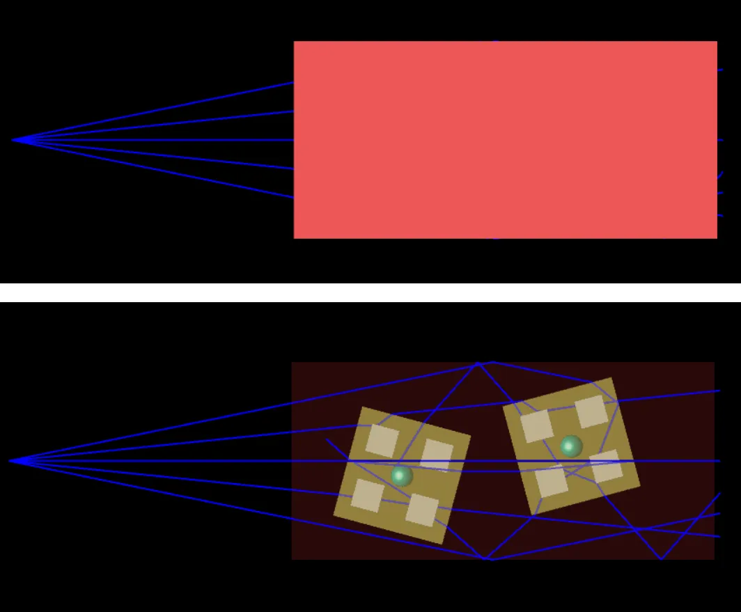 您还可以在实体模型中将表面和物体设置为半透明,这样可以更轻松地查看光线路径。否则,体积内部的光线轨迹会无法被查看到,完全或部分在其他物体内部的物体也会不可见,并且在各种视图旋转位置都无法看到其他物体后面的物体。