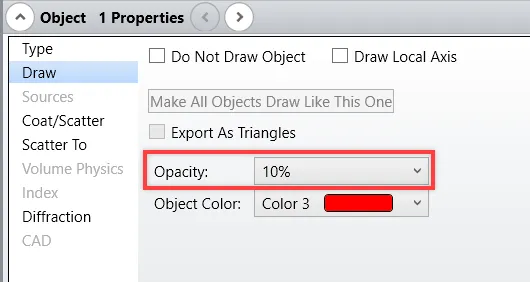 选择此设置将允许 OpticStudio 更新物体/表面的透明度设置,以便看到所有物体/表面。