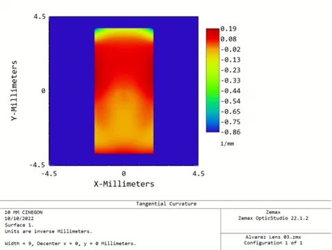 图10. Alvarez 透镜第一表面的子午和弧矢曲率