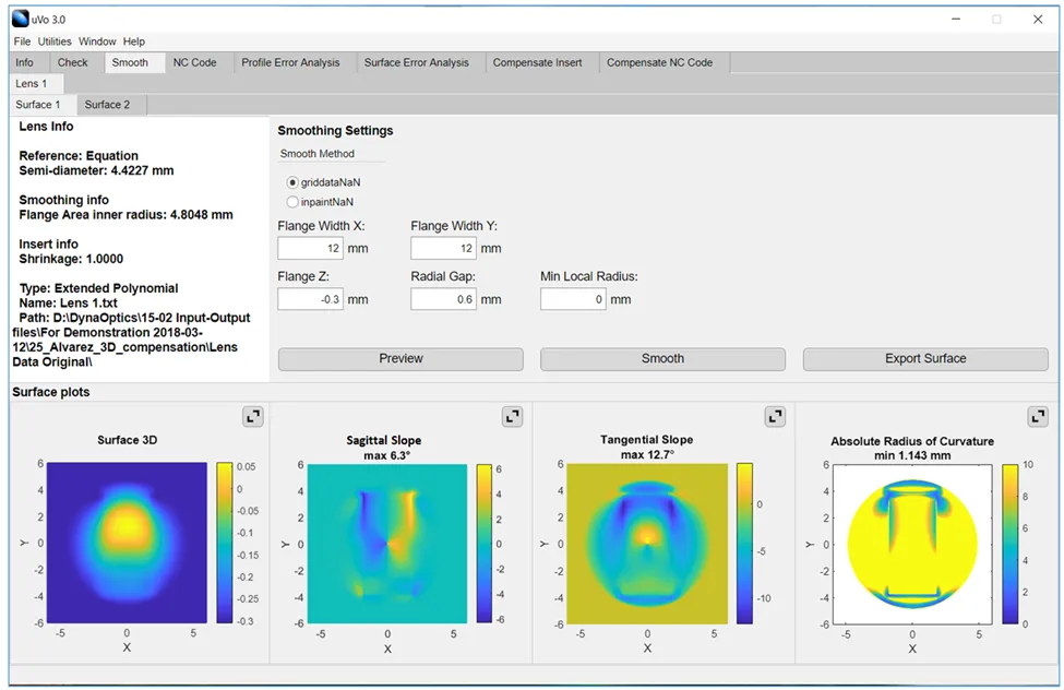 通常,刀具的尖端半径和切削边缘半径明显小于光学表面的局部半径,因此在大多数情况下,我们不必在优化过程中控制它。但在某些复杂形状表面的特殊情况下可能需要它。在优化的最后阶段检查自由曲面的局部曲率半径是一种很好的做法,可以确保所选的刀头没有问题。