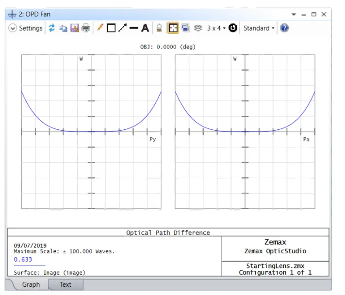 在此阶段,由于构造文件 2 中的相位板没有任何非零项,OFH 是由两束相同的光束的干涉构成,对系统没有任何影响。因此,重构系统的外观和性能应该与原始的“ StartingLens.zmx ”文件完全相同。
