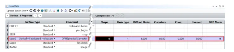 - 改变透镜前表面(表面 #3)为光学构造全息图