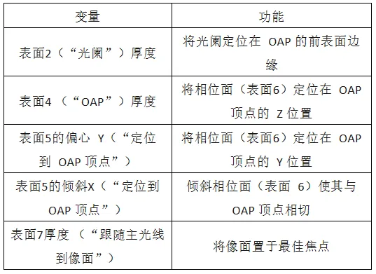 我们将通过优化来正确定位相位表面。下表描述了每个变量的用途。