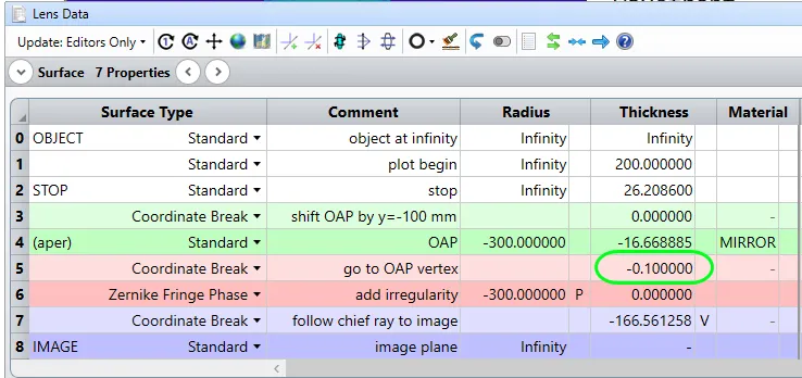 图 6:在 LDE 的第 5 行中,相位表面在 Z 中略有偏移。这可确保相面上的所有点在物理上都位于 OAP 的左侧。