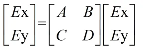 其中A, B, C, D, Ex和Ey均为复值(您可以查看往期公众号文章“如何使用琼斯矩阵表面”了解更多信息)。该矩阵可以通过二维向量描述三维电场但前提假设是默认其传播方向与Z轴重合。因此,电场分量只在XY平面。如果光线确实沿Z轴准直入射系统,则该表面可以提供理想的分析结果,并描述出P和S偏振态的变化及透过率的变化。