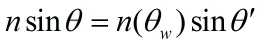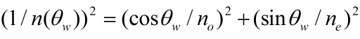 该式同样遵循斯涅耳定律,但是此时的折射率是角度θw的函数,该角度表示晶轴向量a和折射光波矢k的夹角。