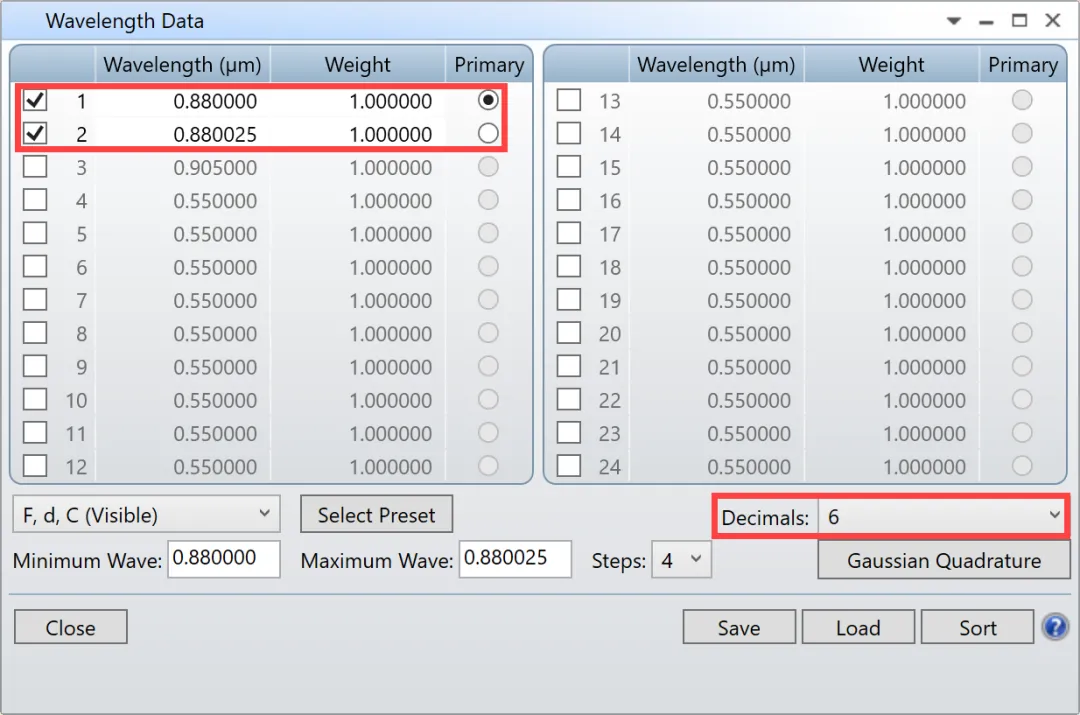 您可以通过将第二个系统波长更改为 0.880050 μm 来验证此结果,并看到在惠更斯PSF横截面图中再次区分峰值。因此,我们可以得出结论,我们的光谱仪的像素有限分辨率是50 pm。